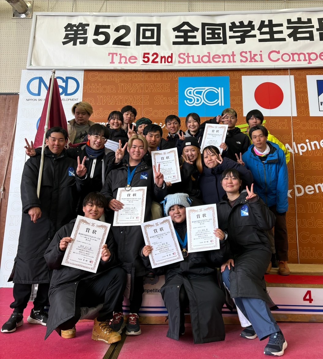 私たちは神楽坂、葛飾、野田の3キャンパス合同で活動しています。主に長野・新潟で合宿を行い、全国学生岩岳スキー大会で総合優勝を目標に練習しています!
